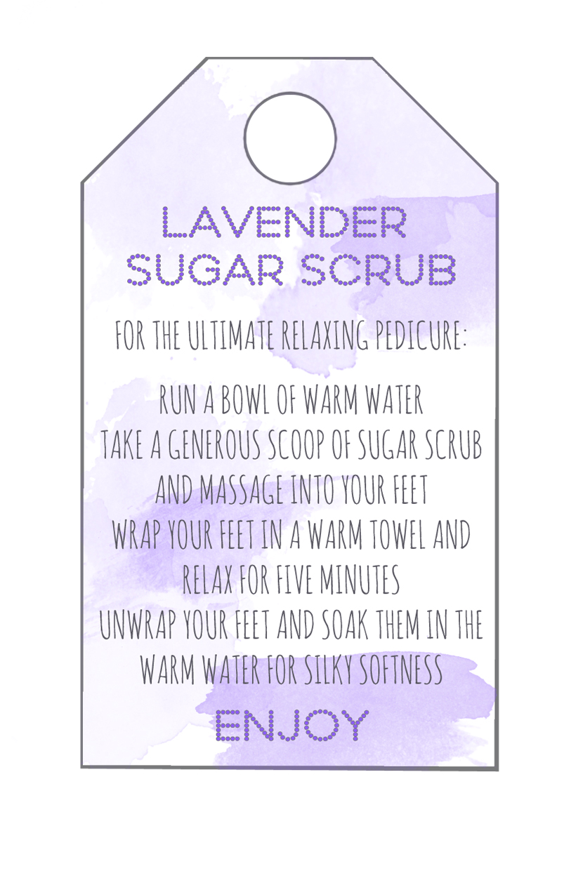 I think a jar of the sugar scrub would make a really lovely gift, especially packaged up with some cosy socks and some treats or tea to enjoy while you soak. I’ve made a gift tag to add to the jars which you’re very welcome to use. Just click here copy the image and resize to your liking before printing out on some card…